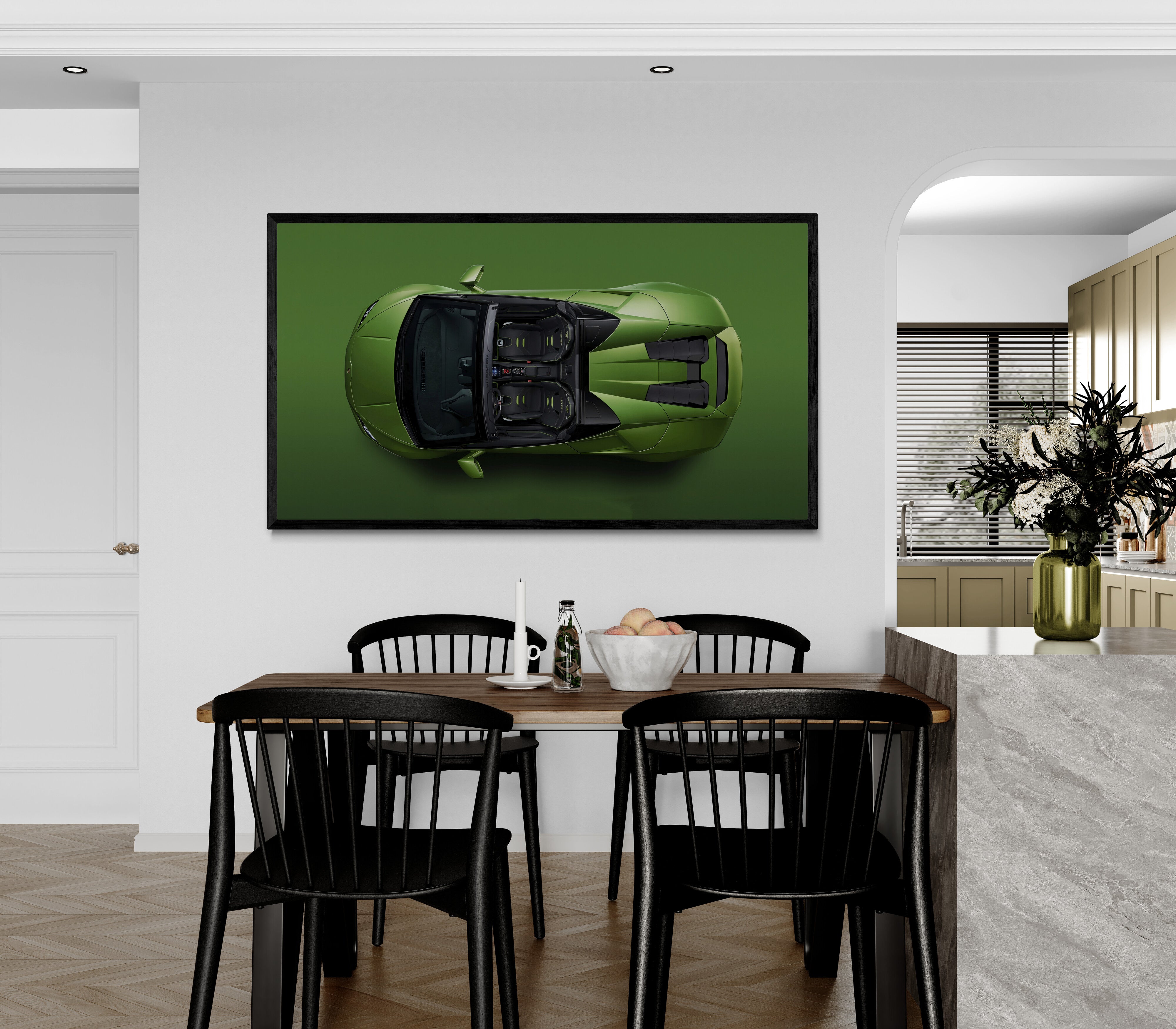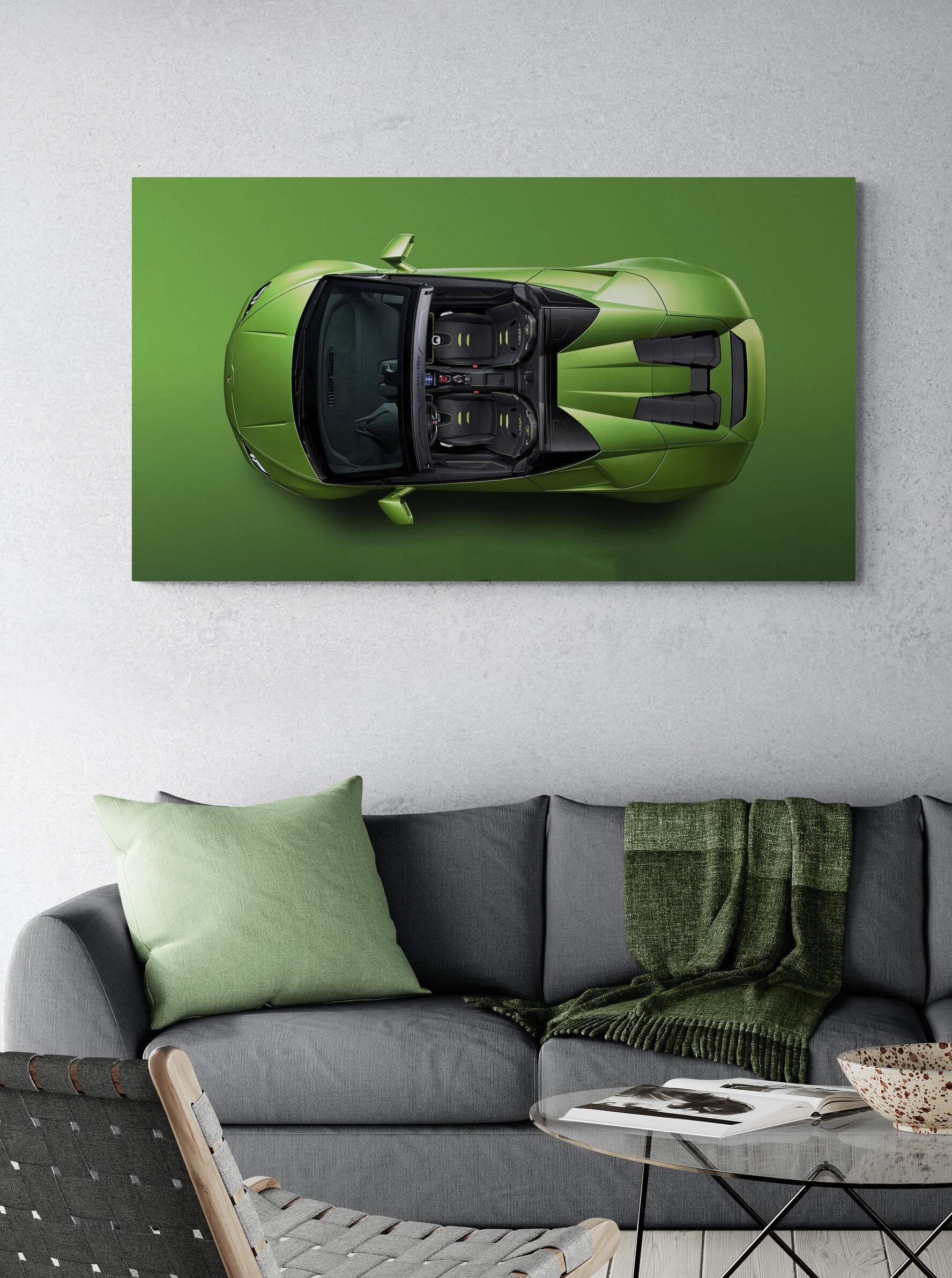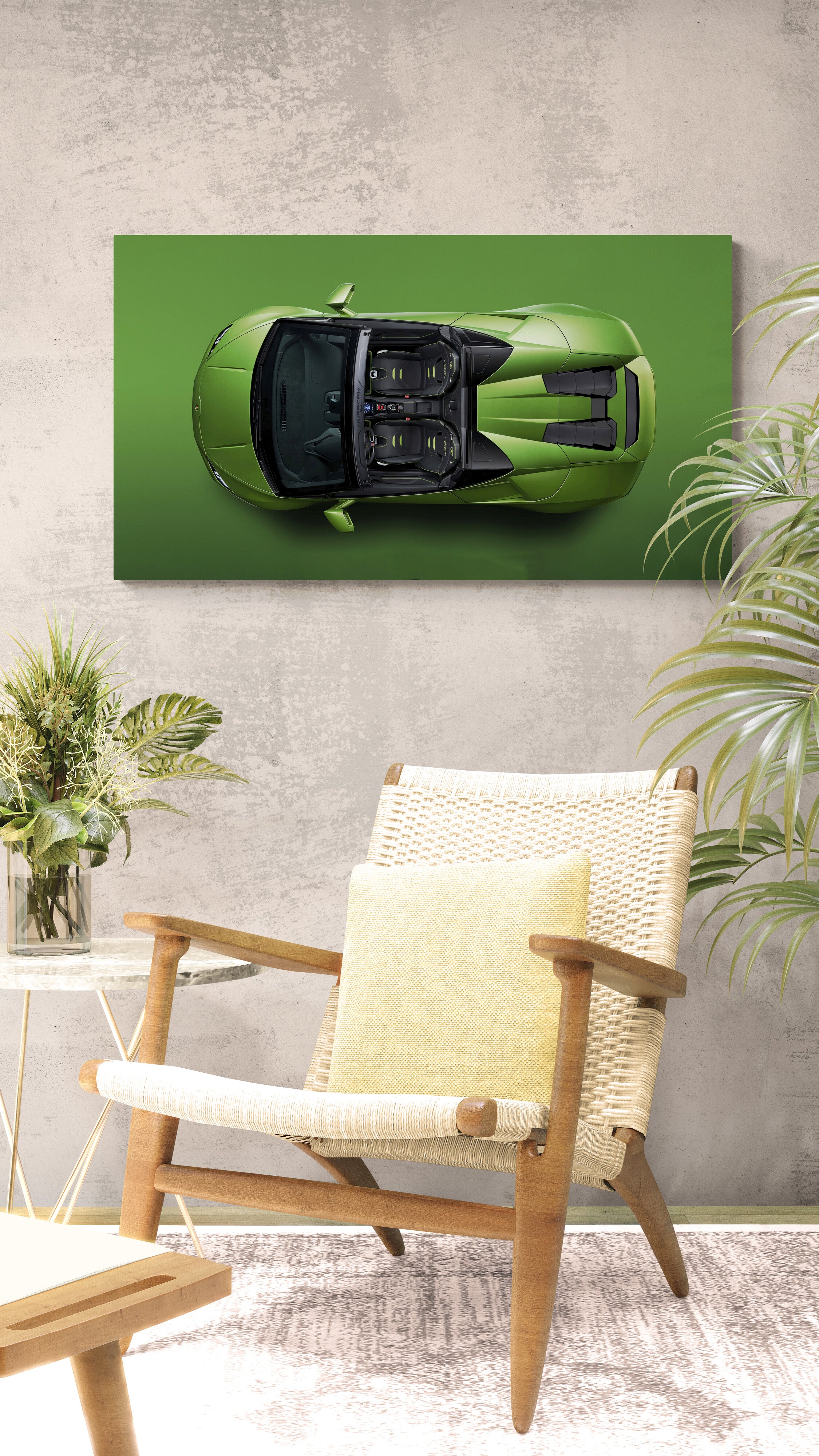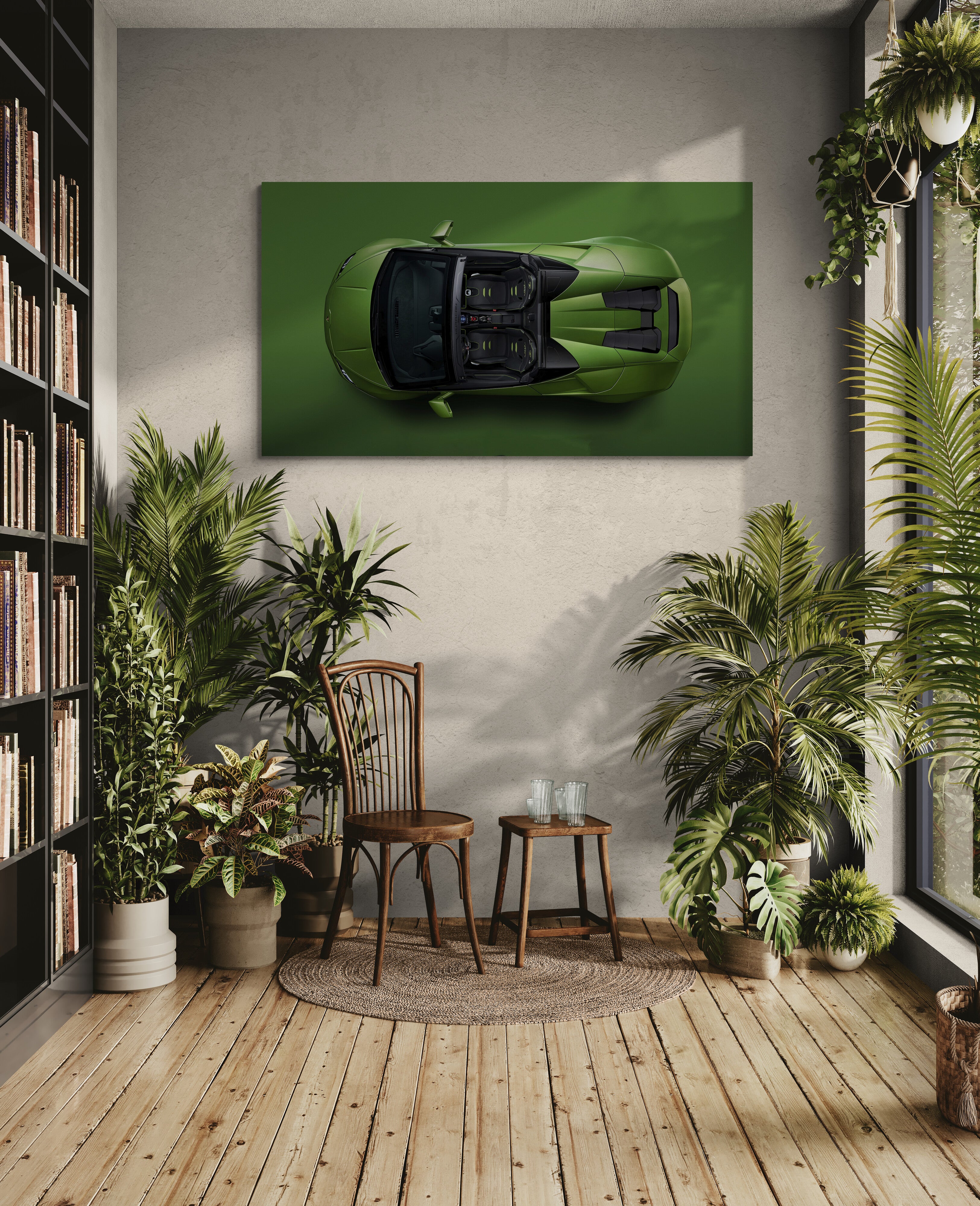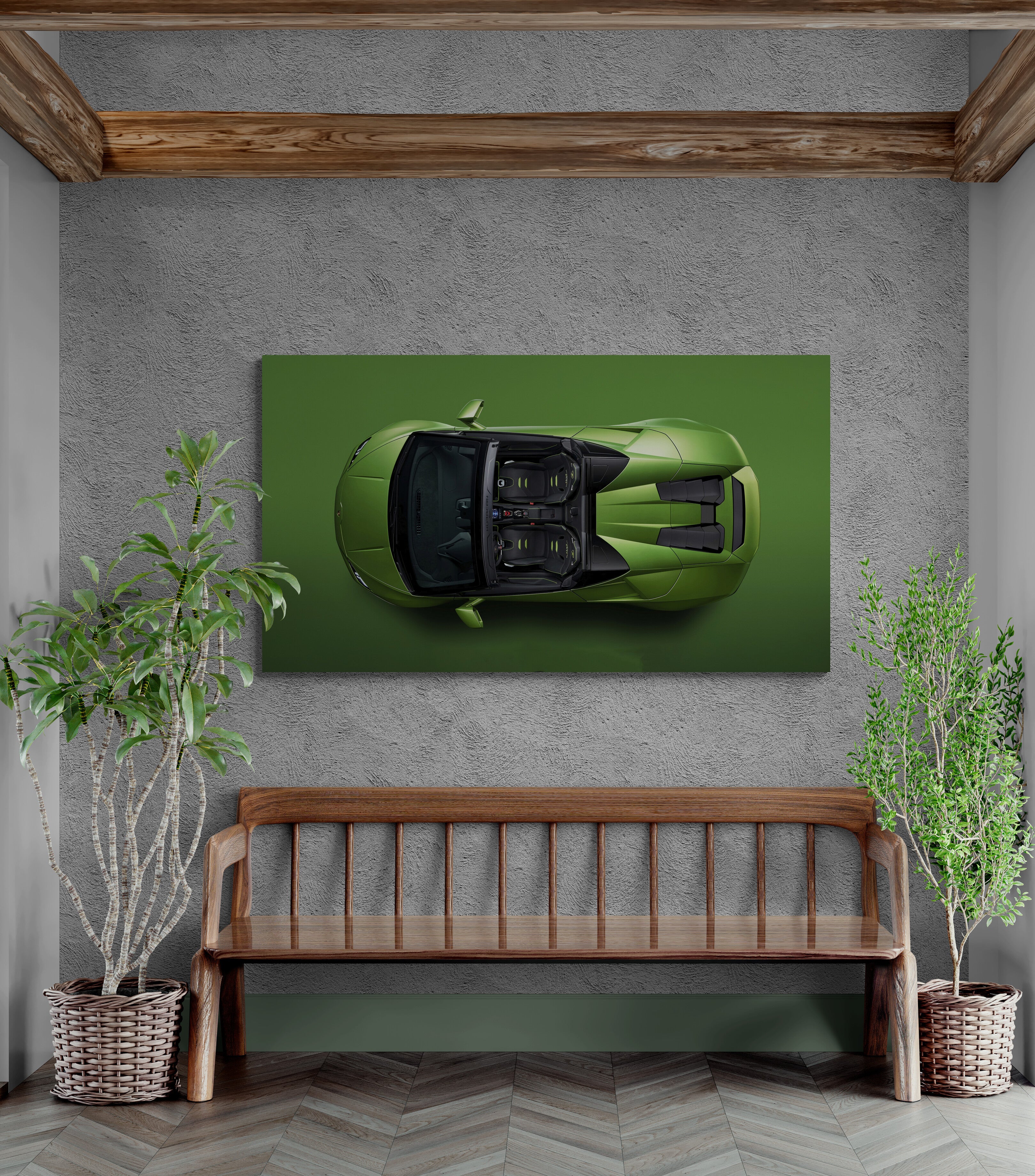 Unleash pure power and elegance with this Lamborghini canvas wall art 💚. Featuring a stunning top-view of a green Lamborghini supercar, this artwork is the perfect statement piece for anyone passionate about luxury cars and modern design.