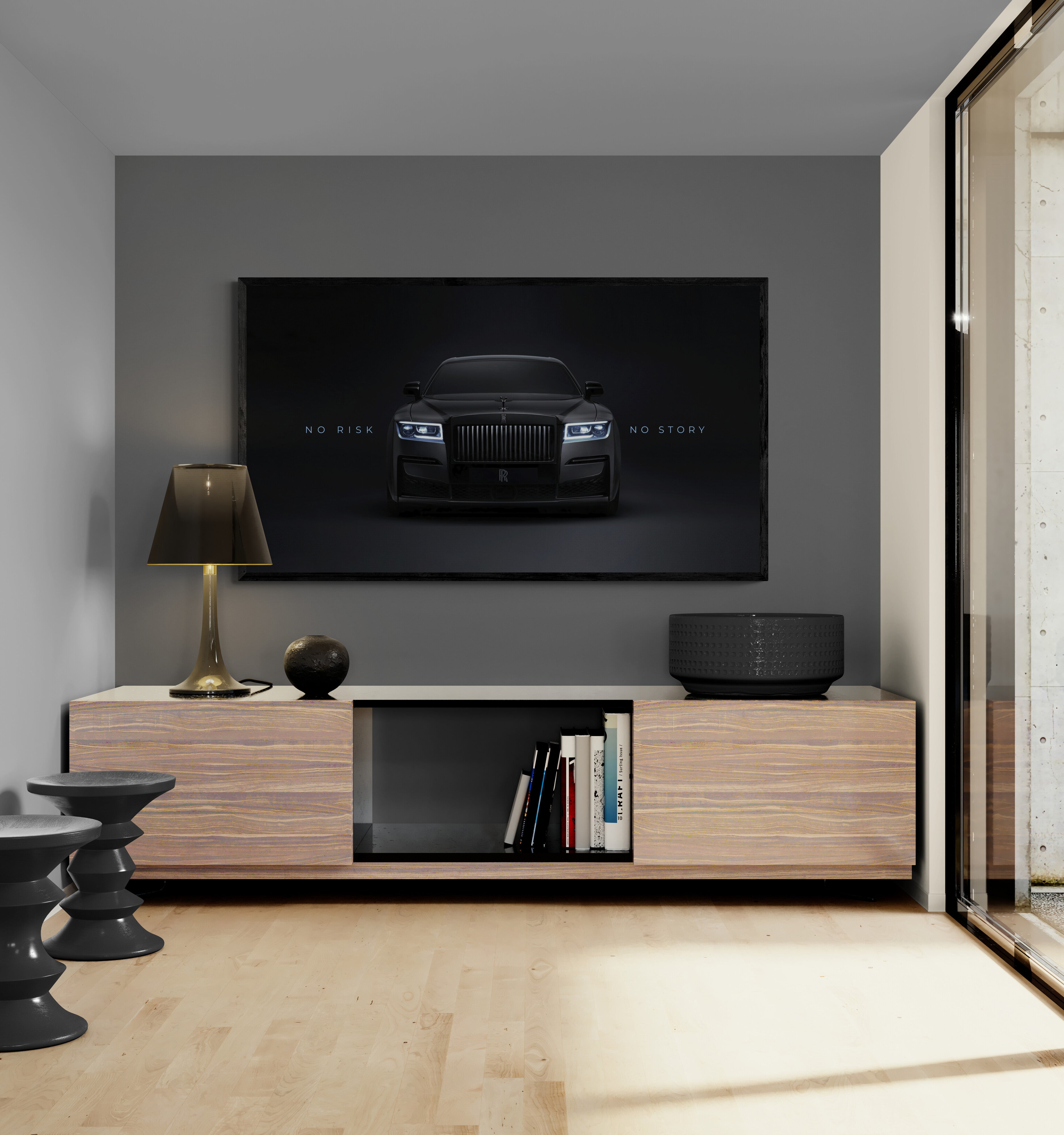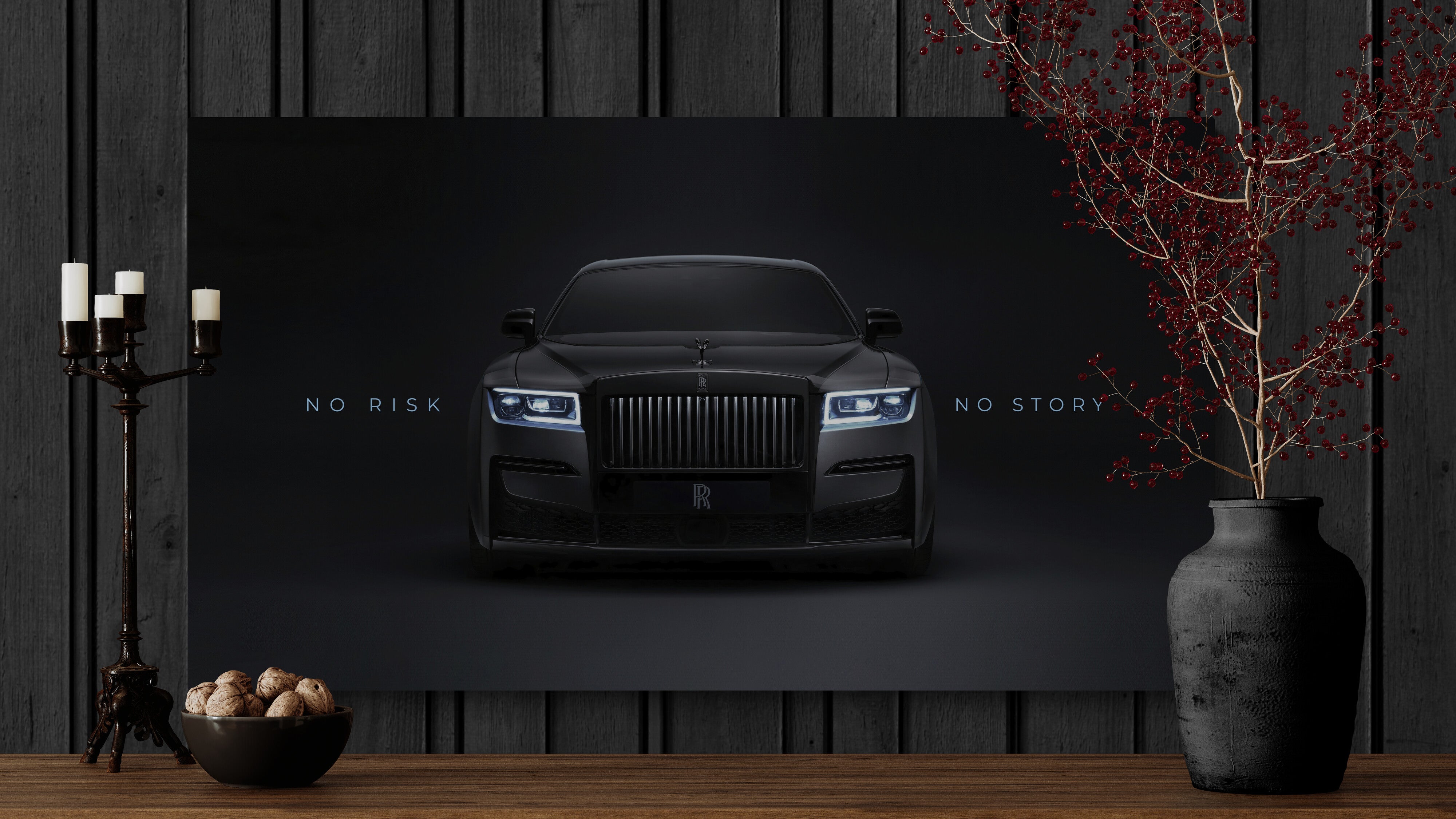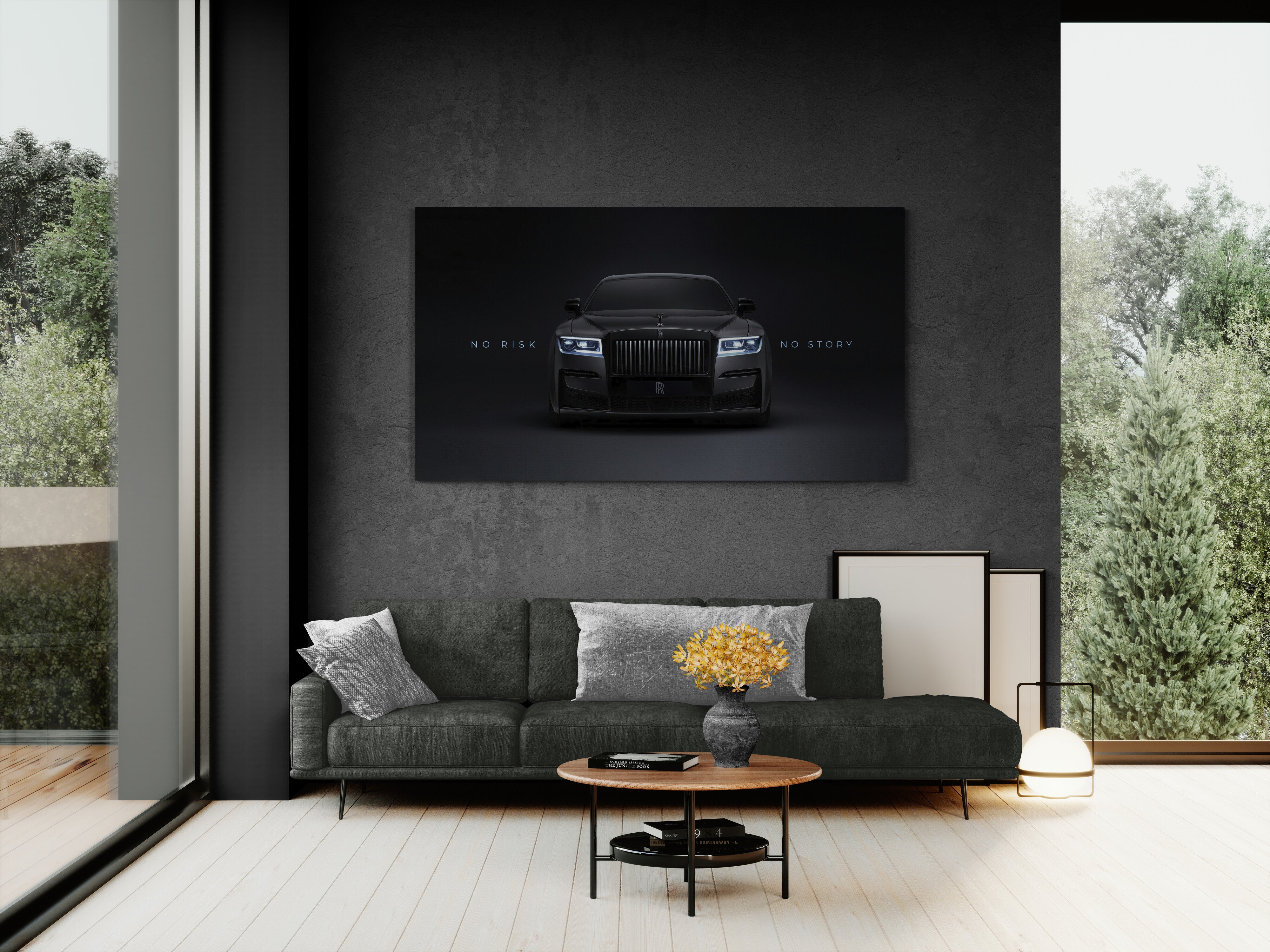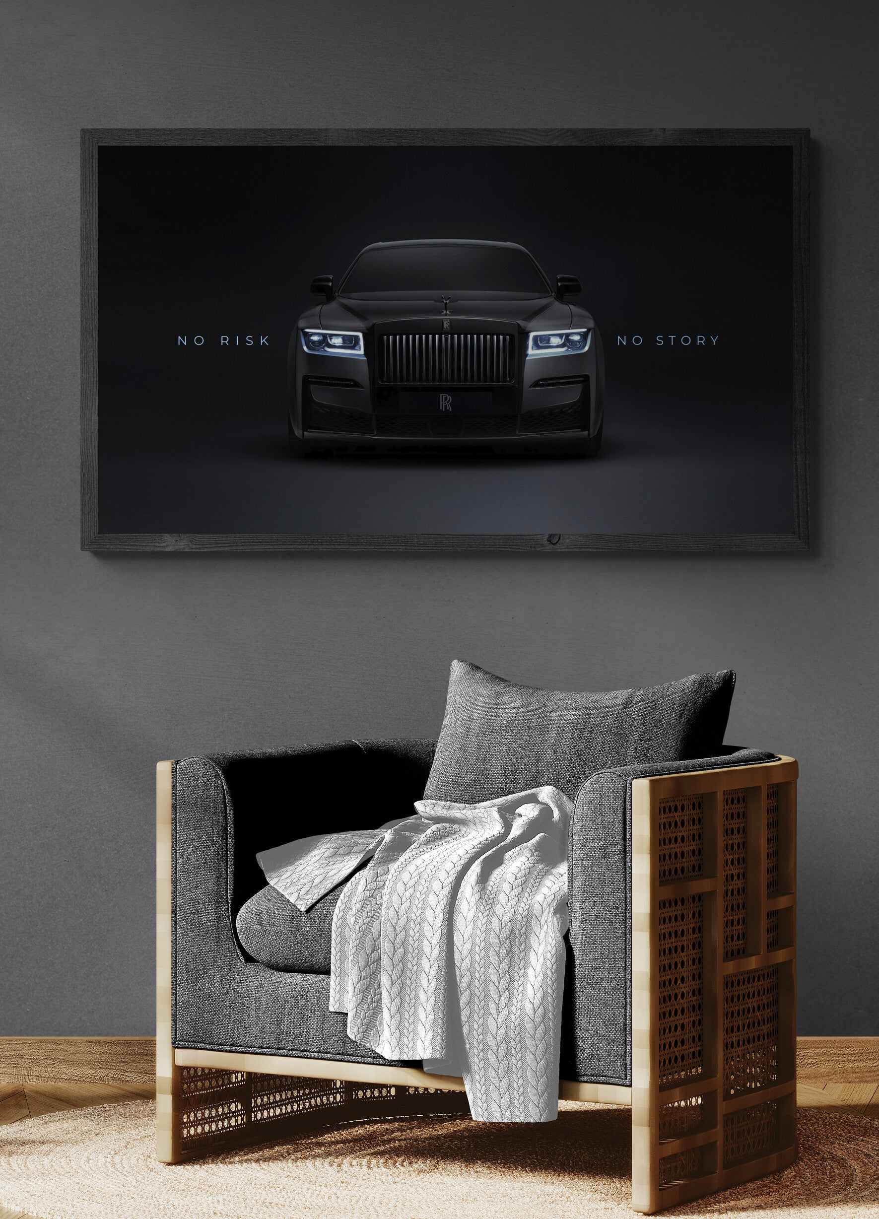 Elevate your space with this Rolls-Royce canvas wall art – a striking black luxury car print featuring the motivational quote “No Risk No Story”. Perfect for those who appreciate elegance, success, and high-end design, this artwork combines automotive power and inspiration in one piece.
