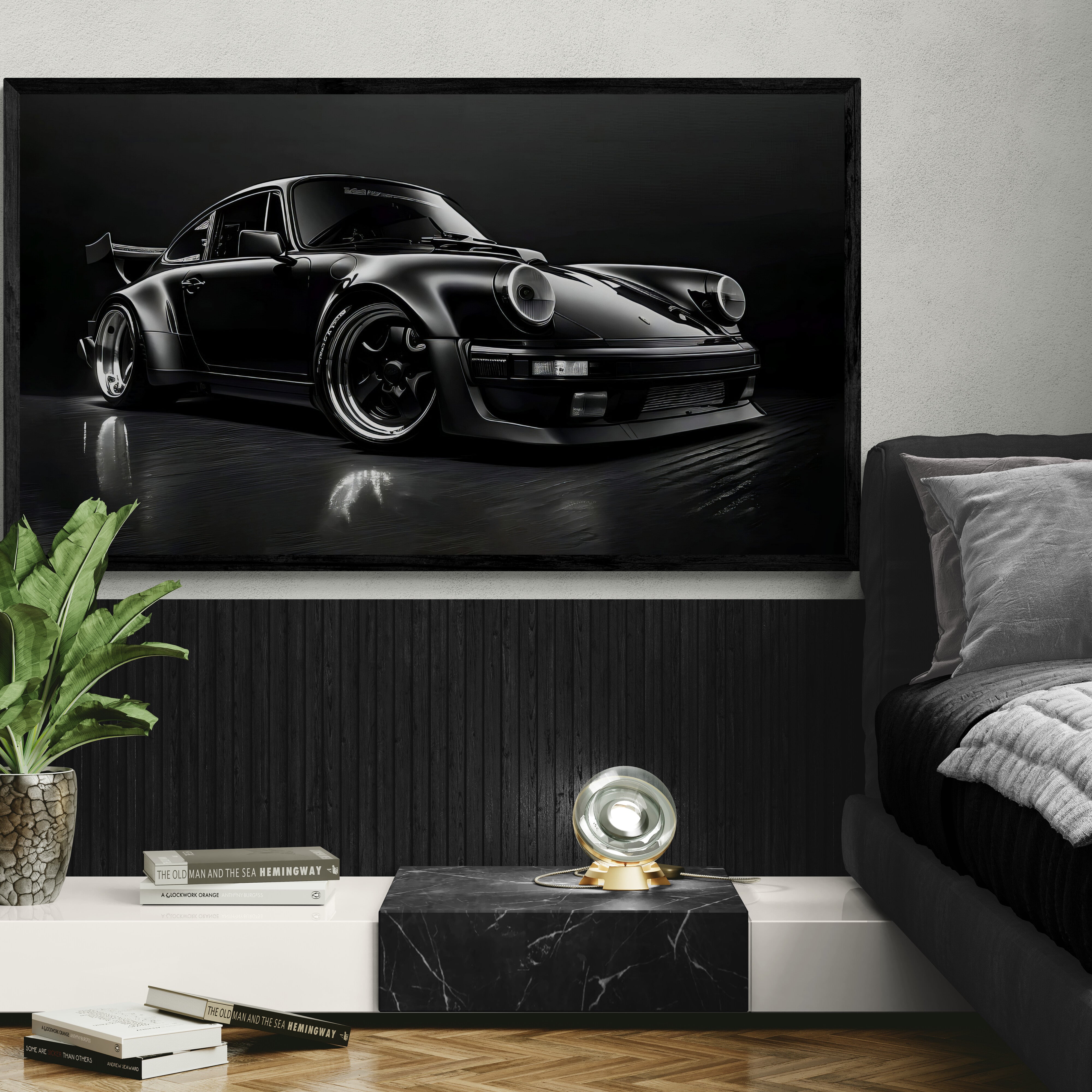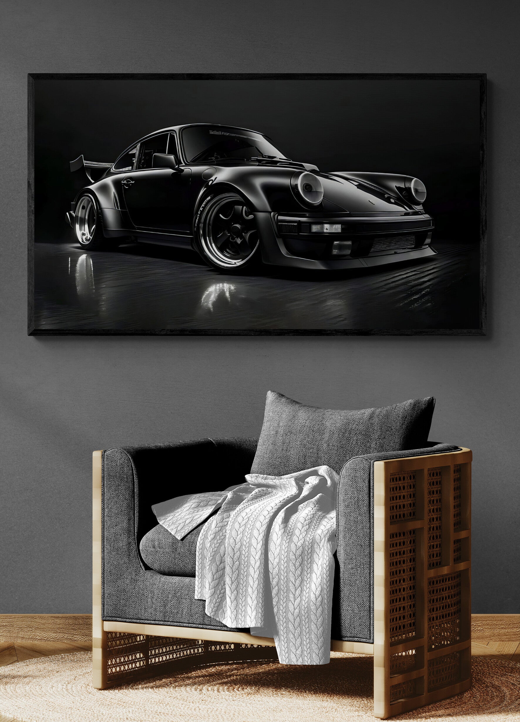 The “Midnight Turbo” Canvas Wall Art captures the legendary Porsche 911 in its most powerful form. Cloaked in deep black with metallic reflections, this artwork radiates luxury, dominance, and timeless design — a perfect symbol of high performance and sophistication.