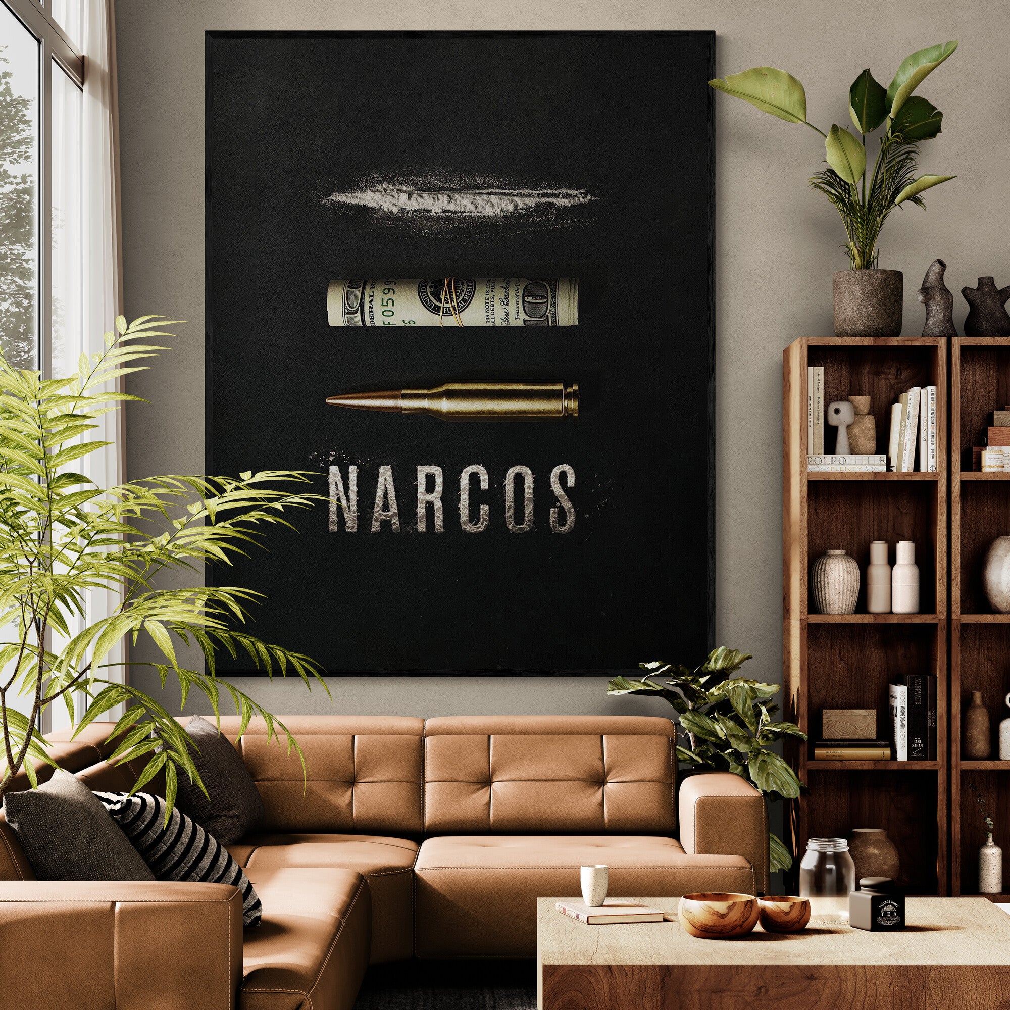 Narcos Aesthetic – Dark Minimalist Crime-Inspired Canvas Wall Art