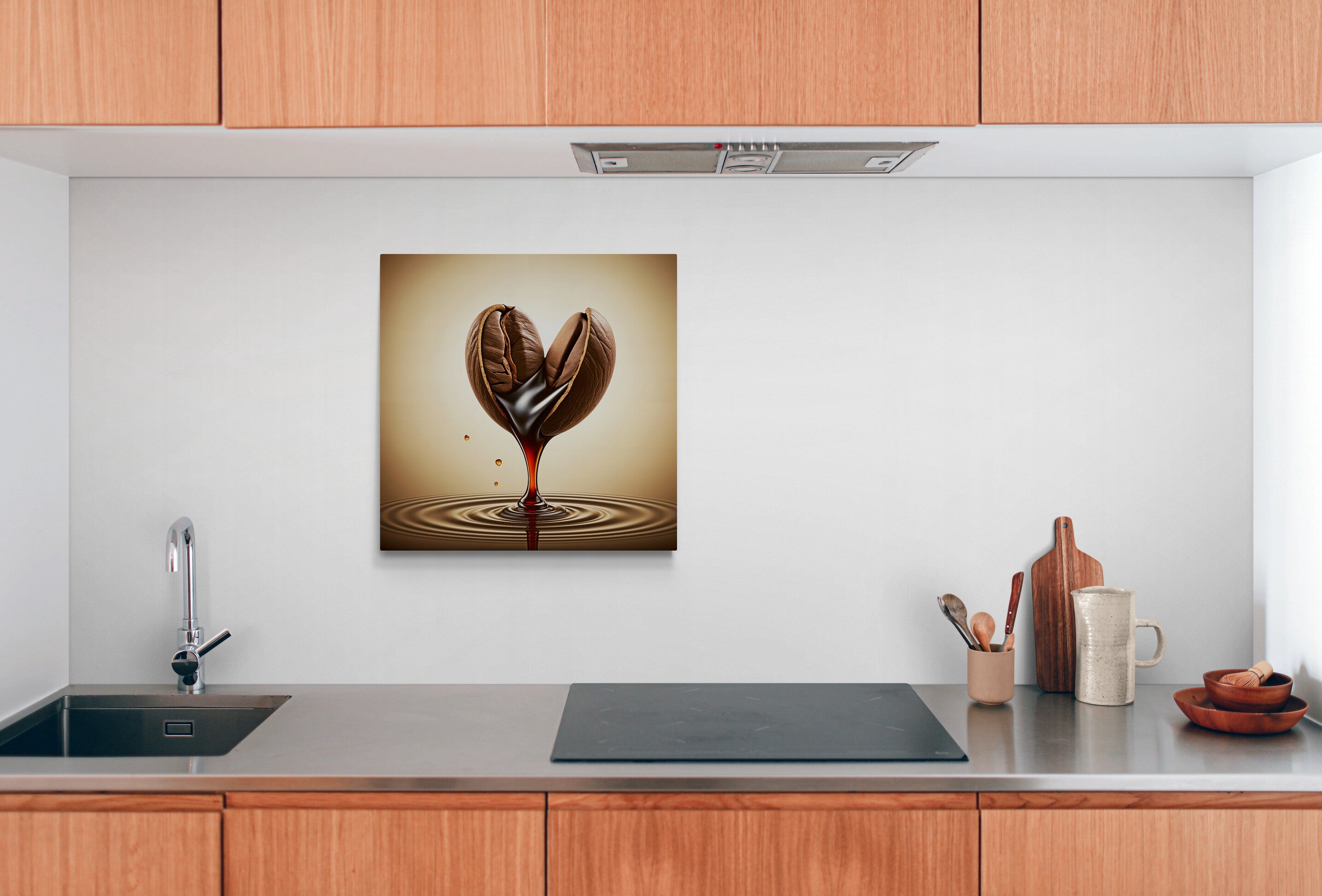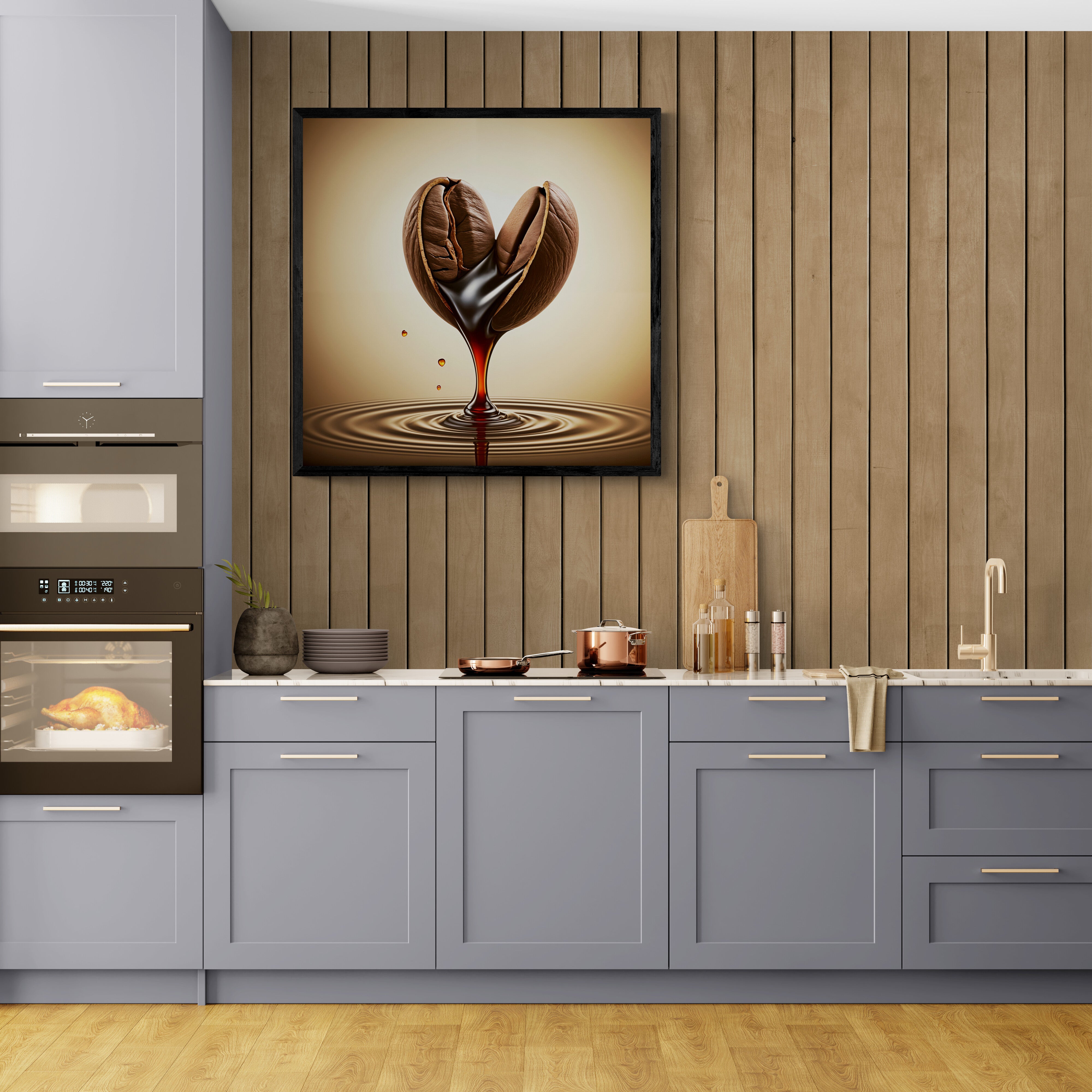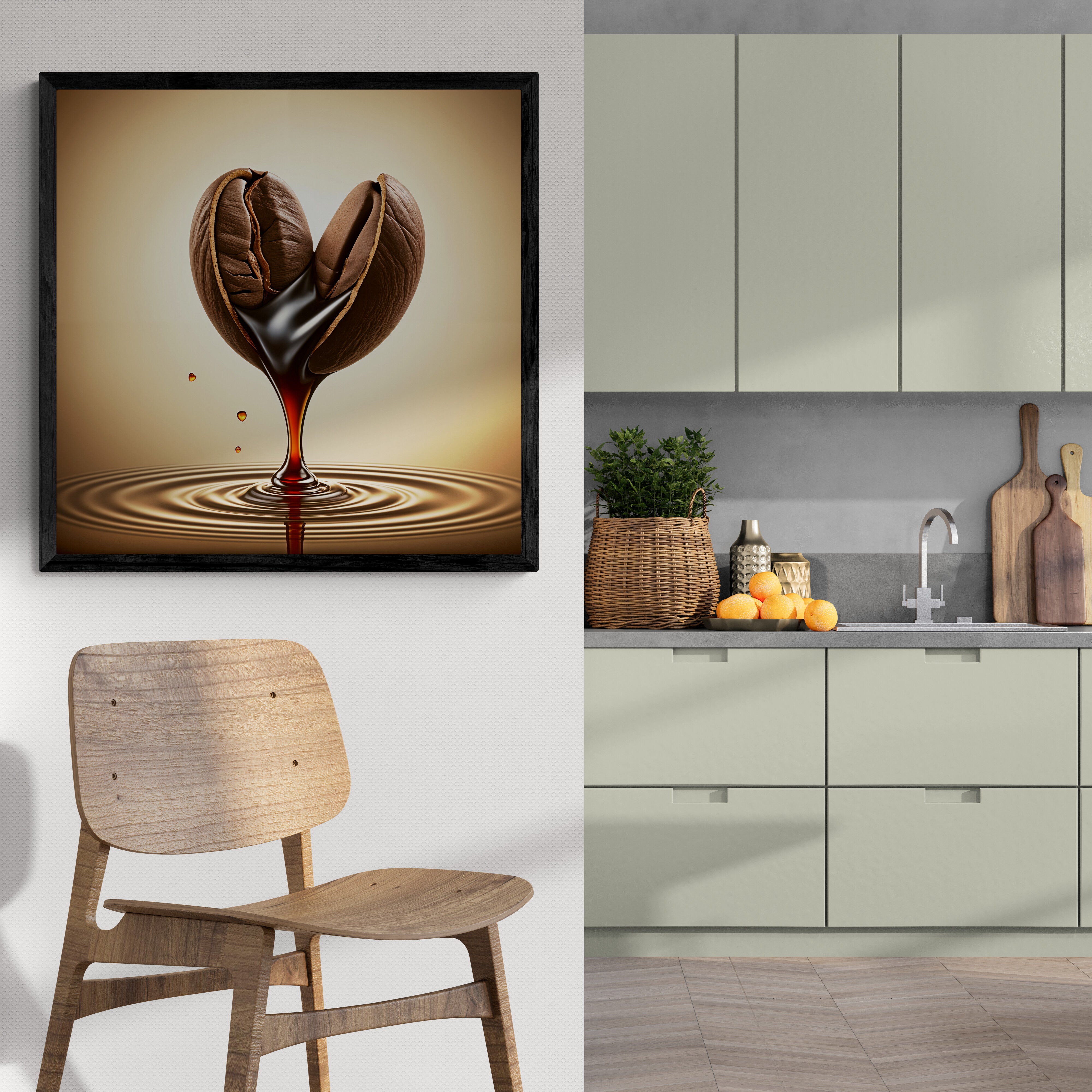 Our Coffee Bean Heart Canvas captures the beauty and aroma of your favorite morning ritual. Featuring a striking close-up of coffee beans forming a heart with rich espresso dripping into a smooth swirl, this artwork radiates warmth, comfort, and sophistication.