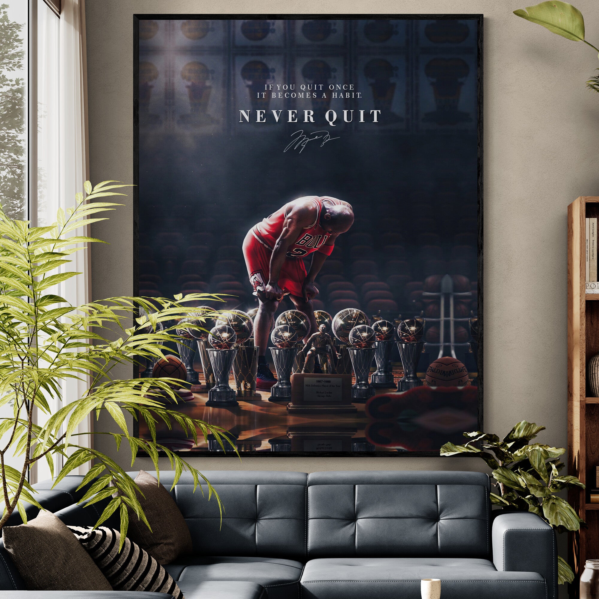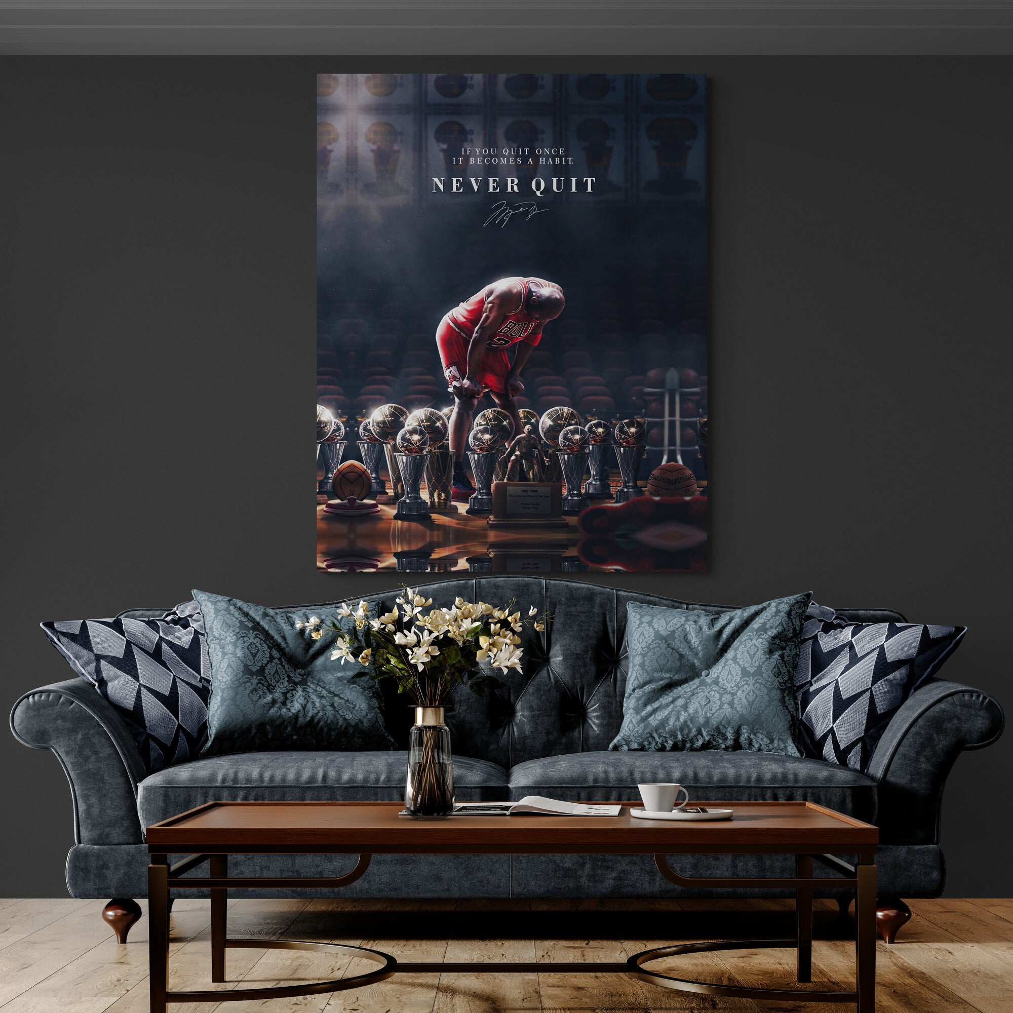 Jordan Never Quit – Motivational Basketball Canvas Wall Art Inspired by Greatness